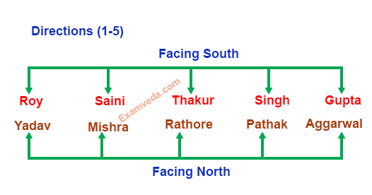Ten people are sitting in two parallel rows having five people each in such a way that there is equal distance between adjacent persons. In row &ndash 1 Roy, Thakur, Singh, Gupta and Saini are seated (not necessarily in the same order) and all of them are facing south. In row-2 Mishra, Yadav, Rathore, Aggarwal and Pathak are seated (not necessarily in the same order) and all of them are facing north. Therefore, in the given seating arrangement each member seated in a row faces another member of the other row.