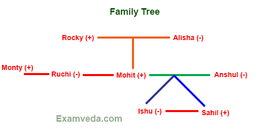 Anshul, Ishu, Rocky, Mohit, Sahil, Alisha, Monty and Ruchi are sitting around a circular table facing the centre of equal distances between each other (but not necessarily in the same order). Each one of them is also related to Mohit in some way or the other. Only two people sit between Alisha and Rocky. Mohit sits second to the left of Alisha. Only three people sit between Rocky and Mohit’s sister. Mohit’s son sits second to the right of Mohit’s sister.