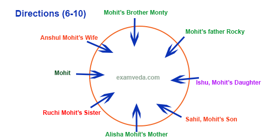 Ruchi is an immediate neighbour of Mohit’s mother. Only three people sit between Mohit’s mother and Mohit’s brother. Mohit’s daughter sits second to the left of Mohit’s brother.